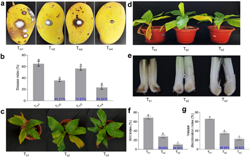 Fig. 1 HNBCa1 exhibited good biocontrol effects on mango anthracnose and banana fusarium wilt.