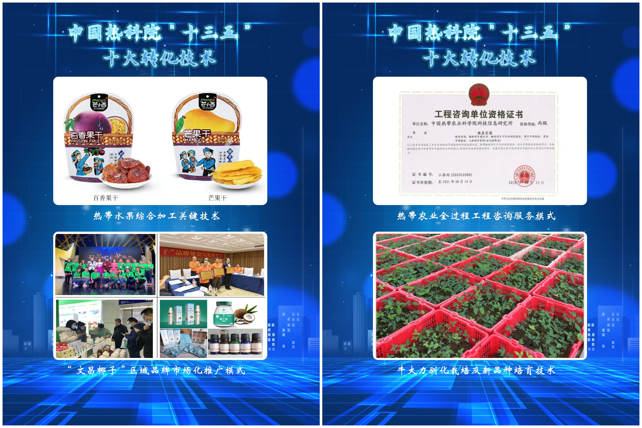11月30日,中国热科院发布“院‘十三五’十大转化技术成果和十大科技品牌产品”,并对院入选“2021中国农业农村重大新技术新产品新装备”的成果予以表扬。