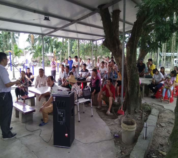 11月21日上午,在石岭村委会书记李其明的陪同下,杨桂生博士来到村民活动场所开展“科学施肥促进农业生产讲座”,村里干部群众等五十多人参加。讲座主要探讨科学施肥的重要性、施肥的技术与要求、施肥量及施肥的时间等问题。讲座运用通俗的语言、形象的比喻,让大家明白施肥的重要性以及学会如何施肥。大家纷纷表示收获较大、对明年槟榔的增产有信心。与此同时,部分村民就施肥相关细节问题进行了提问与讨论。