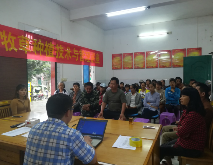 11月22日下午,应坡寮村委会广大村民对牧草种植技术的需求,杨桂生博士来坡寮村委会开展“牧草种植技术与管理”专题讲座,讲座座无虚席,吸引了附近各方村民近四十人参与。讲座思路清晰,操作简单易行,针对牧草种植的生长管理技术与规范,围绕牧草种子的选择、育种期和幼苗期的管理、生长期和成熟期的管理展开,重点强调不同时期管理注意的关键问题。其中,养殖户王仕保现身说法,感谢杨博士对牧草种植项目的支持,表示在杨博士的指导下,他的牧草长得不错,他说:“牧草很容易,技术没有问题,只要大家用心去管理,想学有空可以去现场观看”,牧草种植为南坤镇农业发展提供了新的思路。