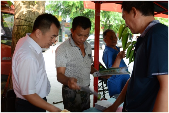 海南省第十三届科技活动月开幕式于5月8日在美丽的椰乡文昌举行。随着活动月号角的吹响,品资所先后组织畜牧、瓜菜、南药、果树、木薯等专家团队参加了文昌、儋州、昌江、临高等市县科技活动。在活动现场摆放科技成果展板、展示了益智辣椒酱系列产品、灵芝系列产品、牛大力酒、益智酒、忧遁草茶、鹧鸪茶、木薯食品等科技产品,发放苦瓜、黄秋葵、豆角、木薯、牧草、益智、黑山羊、黎鸡等20多种种养技术资料,热情为群众解答农业生产技术难题,科技产品得到广大群众的青睐。