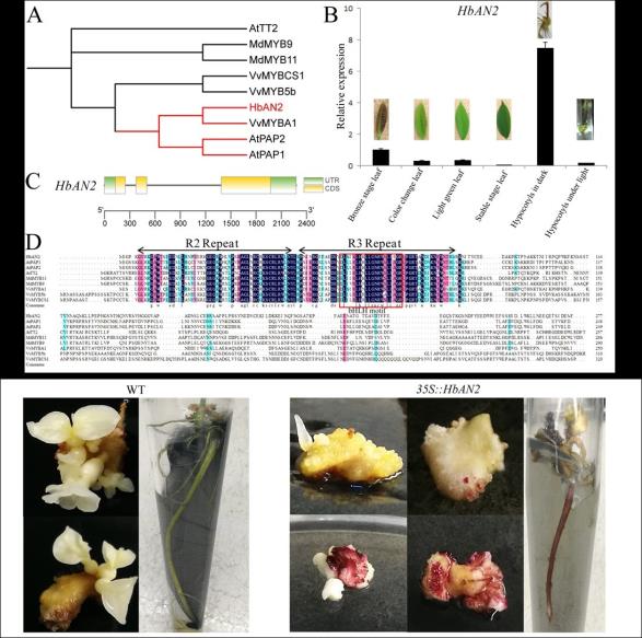 橡胶树中一个新的R2R3-MYB转录因子HbAN2及其在橡胶树转基因筛选中的应用