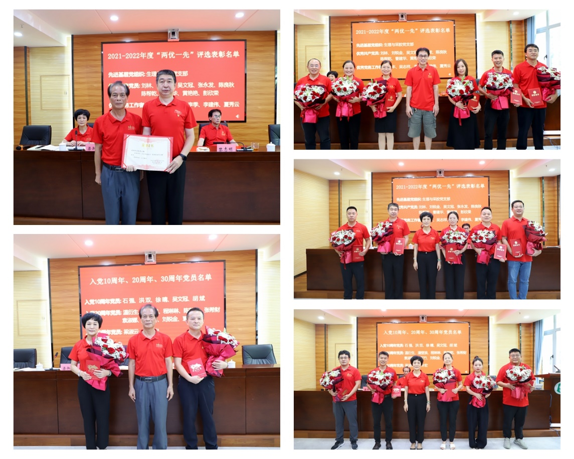 活动中,所领导黄华孙、黎志明、梁淑云向获得橡胶所2021-2022年度先进基层党组织、优秀共产党员、优秀党务工作者的集体和个人颁奖,向入党10周年、20周年、30周年的党员赠送了鲜花和“政治生日”贺卡。全体党员重温入党誓词,面对党旗庄严宣誓,表达了为党的事业奋斗终身的决心。陈帮乾、石强同志作为党员代表发言,结合自身的成长经历,分享了入党的初心,畅谈入党以来的心得体会和未来的努力方向。
