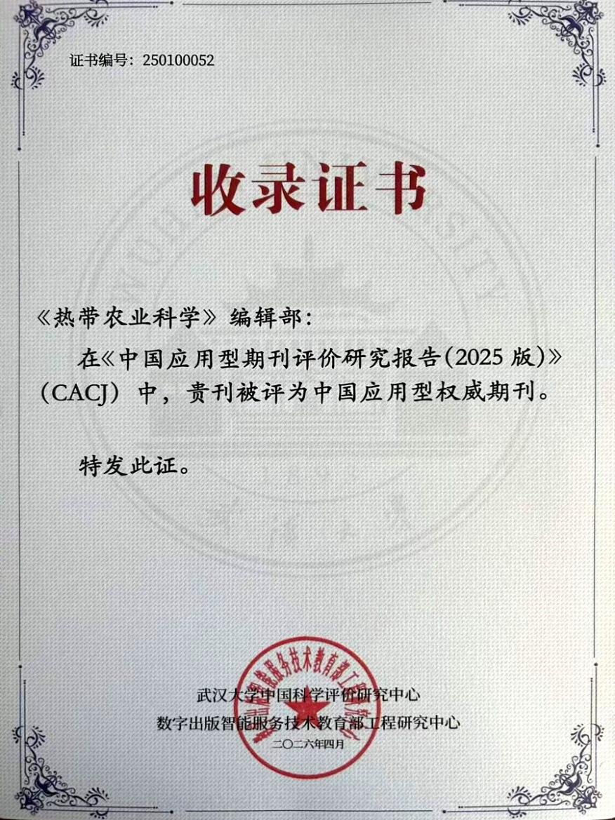 4月10日,《中国应用型期刊评价研究报告(2025版)》(以下简称《报告》)正式发布。通过综合评价,《热带农业科学》再次入选CACJ中国应用型核心(权威)期刊。