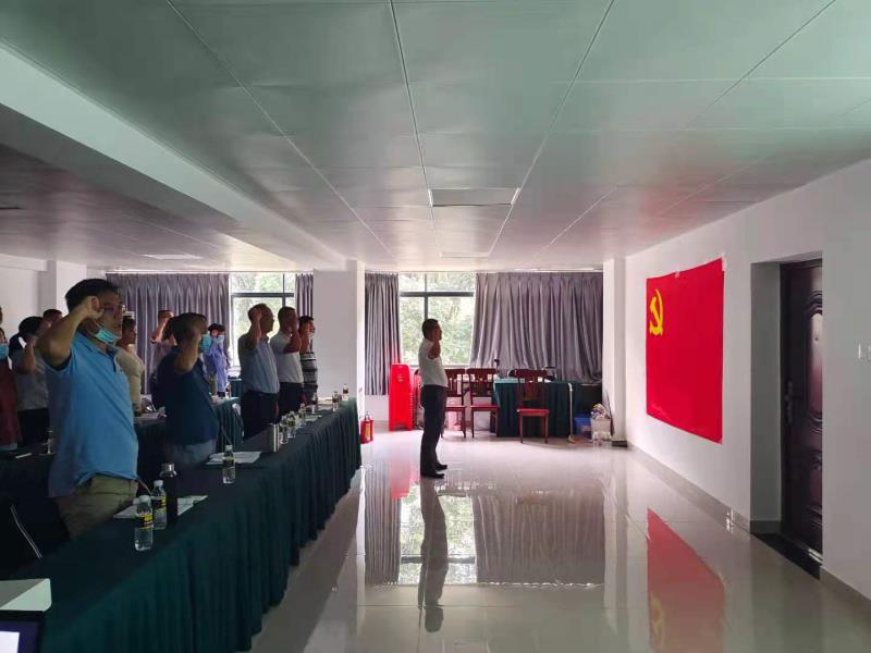 党课上,全体党员同志在陈志权主任的领誓下,面对鲜红的党旗再次庄严宣誓,回顾入党宣誓时的庄严承诺和坚定决心。