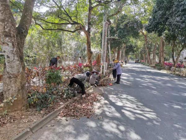 在整治工作中,大家认真清理了风华路、育才路绿化带中的枯枝落叶,清除各类卫生死角。虽然试验场原卫生院、橡胶所和环植所原停车库长期闲置,垃圾遍地,角落藏污纳垢,大家却毫无怨言,发挥不怕脏、不怕累精神,个个奋力争先,清理枯枝、杂物、角落废旧垃圾等,共清运垃圾30余车。在时间紧、任务重的情况下,还对儋州院区39栋住宅楼开展环境消杀,养护路灯300盏。
