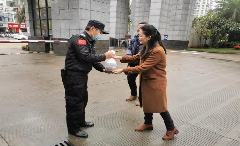 在海口热科园管理服务有限公司马宇超经理的陪同下,肖婉萍副主任先后来到了海口院区东门、西门、科技中心主楼等地,为坚守岗位的员工们送上一碗热腾腾的姜汤,道上一句“辛苦了”,感谢他们在寒冷的天气里仍坚守岗位,并叮嘱员工们要做好防风防雨防寒等保暖工作,作业期间要注意安全。员工们纷纷表示十分感动和温暖,既暖身又暖心。