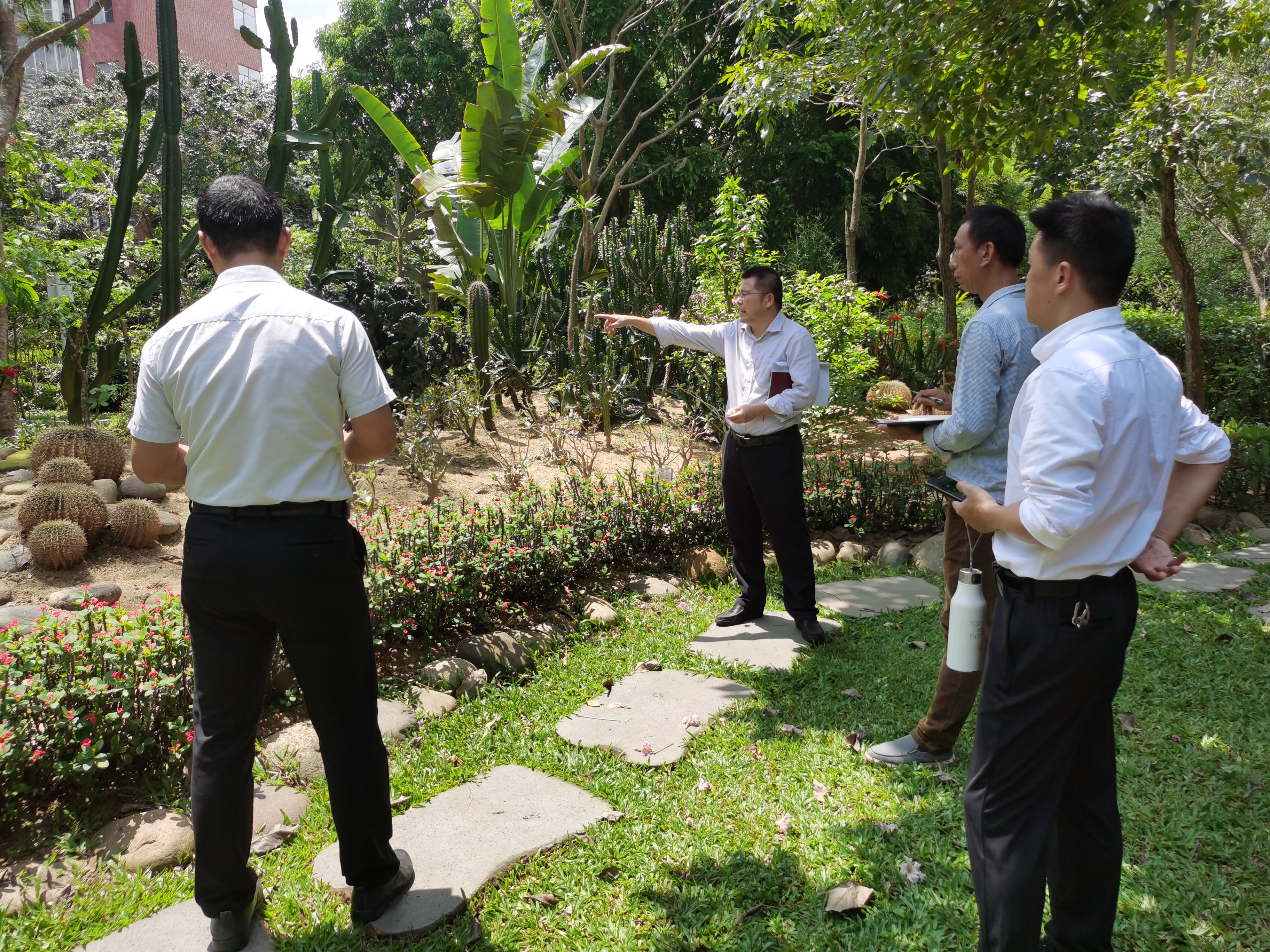 检查中,重点察看了园区建设存在的不足,对需要调整定植的树种和花卉进行明确,对必须修剪和美化的区域细节一一进行部署,对需要立即整改事项的进行再落实,累计维护整改事项达100余项,海口热带农业科技博览园建设部和海口热科园管理服务有限公司根据职责分工立即组织实施。
