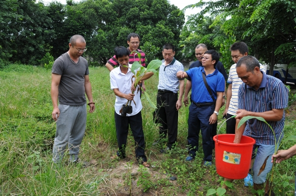 2016年9月30日,海口实验站办公室主任王学良带着专家及一批300多株香蕉苗,来到红洋队开展“双联系”活动。专家在种植现场向红洋队队干和部分职工群众认真讲解香蕉苗的种植技术。