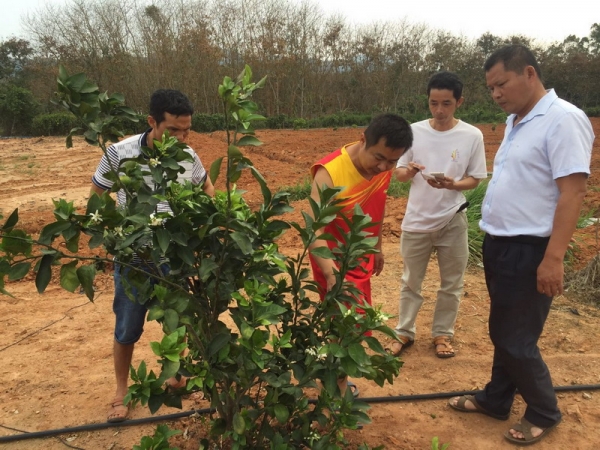 为加强学习果树生产的先进管理技术,了解果树生产的市场信息和管理方法,进一步做好科技园区内果树的管理工作,3月15日,场领导陈秀龙带领基地管理中心人员到品资所国家热带果树品种改良中心实地学习,从事果树研究、管理多年,经验丰富的何树海老师接待并讲解。