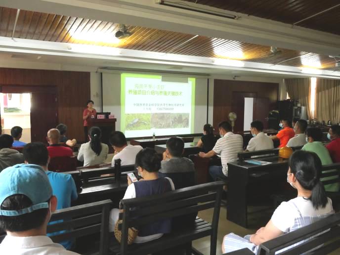 本次培训为期半天,邀请生物所王冬梅研究员讲授《海南冬季小龙虾养殖项目介绍与养殖关键技术》专题课程,向大家详细介绍了小龙虾产业发展现状、海南气候优势、市场前景、经济效益、技术要点等情况。
