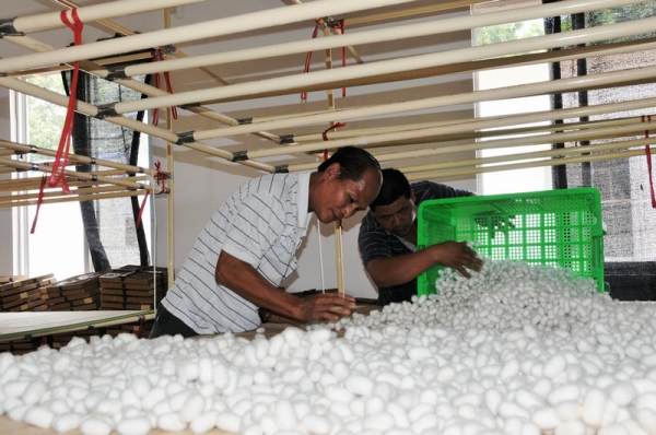 试验场桑蚕种养示范项目第一批蚕喜获丰收