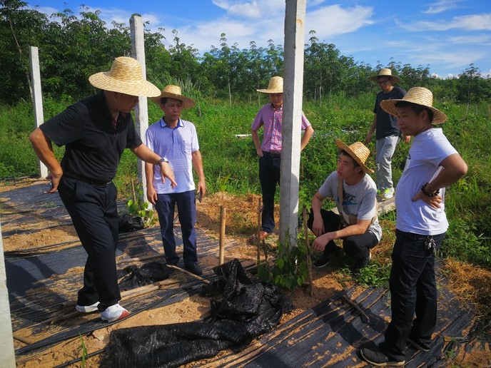 8月2日下午,香饮所王学良主任带领胡椒、可可专家到抄石队对基地建设及生产情况进行调研,我场资产办公室,产业技术中心相关人员陪同调研。