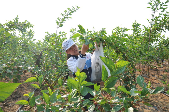 四五月份是桑葚成熟的季节,数百亩翠绿的桑树林随风微颤,枝桠上结满了红色的桑葚,十分诱人。在一米多高的桑树林内, 学生们兴高采烈,欢声笑语,有的对桑叶和桑葚产生好奇,细细观察;有的结伴拍照;还有的迫不及待地采摘品尝。
