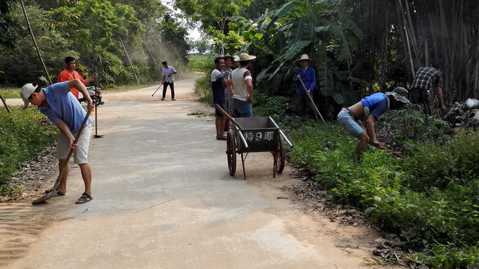会后,为创造干净整洁的队容队貌,优化队里的生活环境, 在队班子的带领下,青年们进行打扫主干道路的义务劳动。队班子率先垂范,青年们有的用铁锹,有的用扫把,清除杂草,清理垃圾。一个个干得热火朝天,汗流夹背。