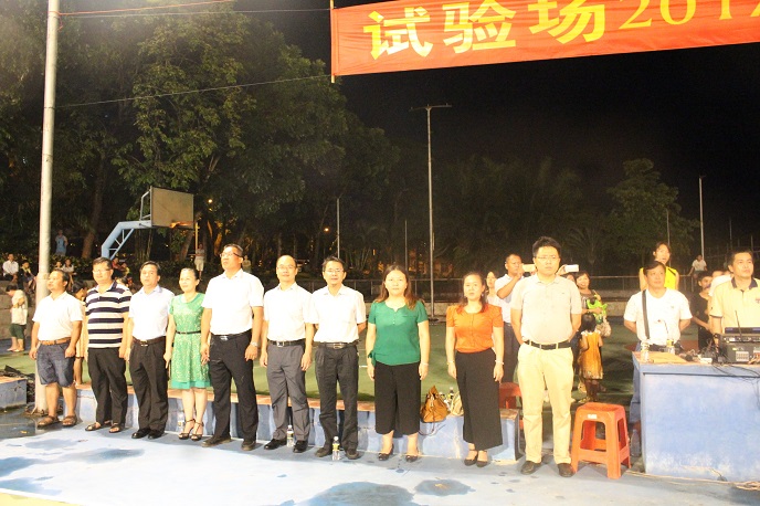 为进一步加强文化建设,丰富职工业余生活,凝聚人心,助力改革发展,8月17日,由场工会举办的第三届篮球比赛在儋州院区东湖篮球场正式开幕。副院长李开绵出席并致词,院机关党委副书记李晓粉、场党委书记徐志以及在家班子成员、活动赞助商代表、数百名职工群众等参加开幕式。此次活动得到了院机关党委、中国农业银行宝岛新村支行、儋州鑫标园林有限公司等单位的鼎力赞助。