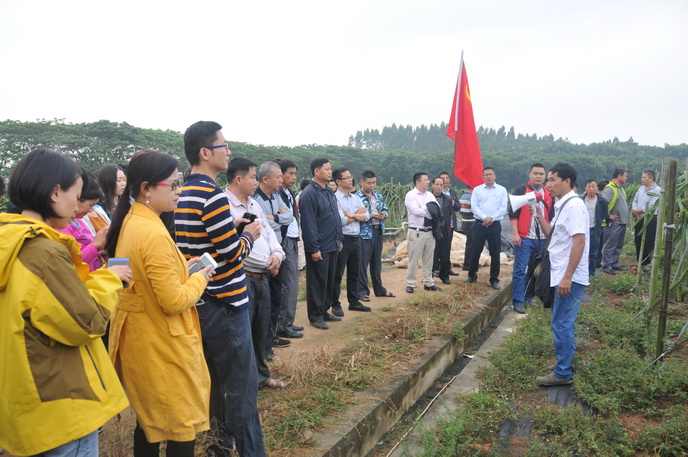 随后,骑着摩托车、电动车以及自行车的活动队伍在向导车辆的指引下浩浩荡荡、井然有序地出发,先后参观了科技园区的火龙果和葡萄基地、十一队槟榔椰子基地、十二队养牛基地、红城队桑蚕园、红洋队百果园、红星队沉香园等产业基地。通过基地管理人员对基地建设、产业规划等情况的讲解,大家对场重点产业有了比较深刻的了解。有些人员因工作性质原因还是第一次到基地参观,感到很亲切很兴奋,收获也很多,对科技博览园有了更加清晰的认识。
