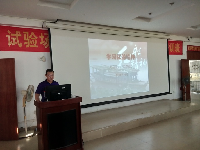 随后,于钦华副所长以学习红船精神为主题,通过梳理我党的发展历程,阐述红船精神的历史内涵和价值意义。他最后点明弘扬红船精神,就是要不忘初心,牢记使命;就是要坚持无私奉献、艰苦奋斗、团结协作、勇于创新,推进试验场创新改革发展;就是要加强党的建设和文化建设,形成良好的凝聚力和向心力,为试验场创新发展提供精神支撑。