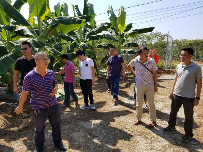 会后挂职人员分别参观了科技园区基地、大石队稻-鸭-虾基地及香蕉基地。当天下午还邀请了退休职工卢崇文带领大家参观了三队基地、七队基地、红旗队、一队旧址和王牌树。